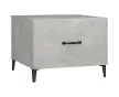 vidaXLvidaXL Table basse avec pieds en métal Gris béton 50x50x40 cmTable basse avec pieds en métal Gris béton 50x50x40 cmTable basse avec pieds en métal Gris béton 50x50x40 cmIntroduisez un air de charme industriel dans votre intérieur avec cette table basse ! Bois d'ingénierie robuste : le bois d'ingénierie est d'une qualité exceptionnelle avec une surface lisse et présente également résistance, stabilité et résistance à l'humidité.Dessus pratique : le dessus de la table d'appoint offre une surface sécurisée pour placer des collations, des boissons, des vases, des bols de fruits ou d'autres articles décoratifs.Grand espace de rangement : chaque bout de canapé est conçu avec 1 tiroir avec poignée en métal, offrant un grand espace de rangement pour garder les lecteurs de DVD, les consoles de jeux, les appareils de streaming et les supports multimédia bien organisés.Pieds en métal : le bout de canapé avec pieds en métal est stable et robuste. Remarque :Chaque produit est livré avec un manuel de montage dans la boîte pour un montage facile. Couleur : Gris bétonMatériau : bois d'ingénierie, métalDimensions : 50 x 50 x 40 cm (L x l x