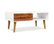 vidaXLvidaXL Table basse Bois d'acacia massif 90x50x40 cmTable basse Bois d'acacia massif 90x50x40 cmTable basse Bois d'acacia massif 90x50x40 cmCette table basse de qualité supérieure est à la fois élégante et pratique. Son design élégant fera de cette table basse un point central de tout salon. Fabriquée habilement en bois d'acacia massif et en MDF de haute qualité, la table basse est très robuste et durable. Elle dispose d'un tiroir et d'une grande étagère, qui offrent suffisamment d'espace pour ranger les appareils multimédias, les livres, les magazines ou les petits objets organisés et à portée de main. Le tiroir a une poignée en laiton qui ajoute au style rétro, tandis que le dessus de table est idéal pour exposer des objets décoratifs, des cadres pour photos ou des plantes en pot. L'assemblage est facile. Couleur : Marron et blanc matMatériaux : Bois d'acacia massif + MDFDimensions : 90 x 50 x 40 cm (L x l x H)Avec 1 tiroir et 1 étagèreAssemblage facile