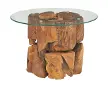 Cette table basse remarquable, avec une base en bois flottant de teck massif dans un design unique, exsude un charme rustique et est un v...
