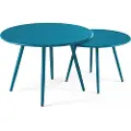 Oviala Lot de 2 tables basses ronde en acier bleu pacific - Palavas