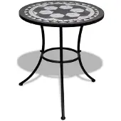 La table mosaïque vidaXL 60 cm noir/blanc est appréciée pour sa structure solide, son plateau en céramique facile à nettoyer et son design attrayant. Elle est facile à monter et stable. Les principaux inconvénients sont la rouille rapide en extérieur, surtout sous la pluie ou le gel, et la mosaïque qui peut se détacher ou s'abîmer avec le temps. La qualité et la durabilité sont jugées variables, plusieurs avis mentionnant de la rouille et de l'usure après quelques années. Non recommandée pour l'extérieur en hiver ou par mauvais temps.