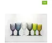 Marrakech - Lot de 6 verres à pied, en verre, surface travaillée 6 verres de table en 6 couleurs différentes : gris, ambre, violet, trans...