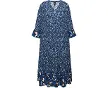 Ulla PopkenUlla Popken Robe marine / jauneRobe marine / jauneRobe marine / jauneImprimé tendance Col tunisien et demi-patte de boutonnage Coupe évasée avec base agréablement large Manches 3/4 avec volants contrastants Viscose douce et confortable, au tombé fluide
