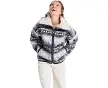 Veste zippée Sherpa oversize pour femmes.Caractéristiques :Tissu :Sherpa contrecollé imprimé avec bordure en velours côtelé tricoté.Doubl...
